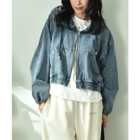 着るだけで旬なスタイルが決まるデニムブルゾン。パーカー感覚で着まわせ、柔らかいコットン素材を使用しているのでごわつかず女性らしく着ていただけます。ボディは程よいリラックスサイズにし、腕周りに余裕を持たせました。ゆったりとしたサイズ感ながら、両開きファスナーを使用しさりげないアクセントに◎