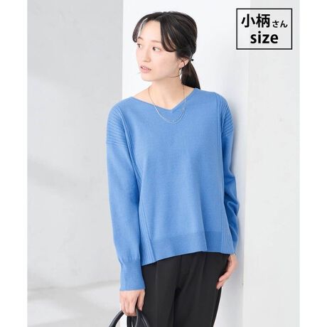・柔らかい風合いの素材を使用したVネックニット
