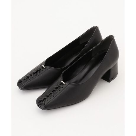 ■デザインフロント部分のクロッシェデザインがポイントのスクエアトゥパンプスです。クロッシェデザインに織り交ぜたメタルパーツがさり気なく目を惹きます。太めのヒールで安定感があるのも嬉しいポイントです。