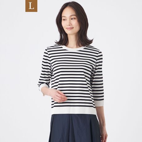 ニットとカットソーのいいとこどりしたアイテムで、比較的長い期間着用していただけます。手洗い可能でイージーケアです。ベーシックな配色ボーダーなので末永くご着用いただけます