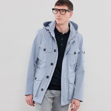 英国陸軍のミリタリーアウターをモチーフとした人気モデル『BERWICK(バーウィック)』です。コートの様にジャケットの上から羽織ったり、一枚でブルゾンとして着用できる汎用性の高いアウターウェアーです。フードも取り外し可能となっており、スタンド衿のアウターとしてもご着用頂けます。中綿入りのライナーが装備され3シーズン着用できる仕様になります。