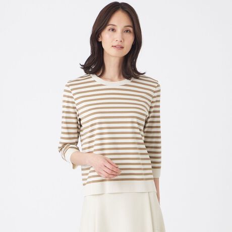 ニットとカットソーのいいとこどりしたアイテムで、比較的長い期間着用していただけます。手洗い可能でイージーケアです。ベーシックな配色ボーダーなので末永くご着用いただけます