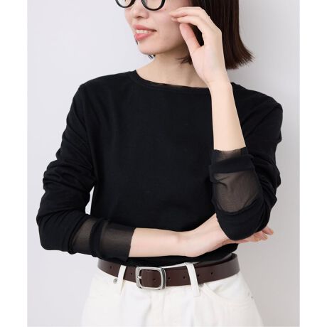袖口からのレイヤードデザインがポイントのカットソー。