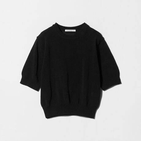 コイル形状の糸を使用した、端正な編地がポイントのショートスリーブニット。