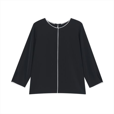 衿や袖回りのほか、前身にも白いラインが入った、上品なブラウス。