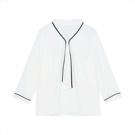 【ストレッチジョーゼット 2WAY 配色ボウタイブラウス】