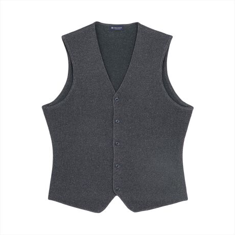 メランジ調の糸を採用し、表情のある雰囲気に仕上げたメッシュジレ。