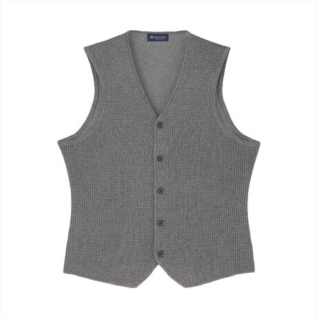 メランジ調の糸を採用し、表情のある雰囲気に仕上げたメッシュジレ。