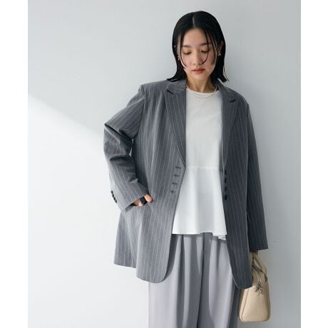羽織るだけで整う、洗練マニッシュジャケット程よくゆとりのあるビッグシルエットが、肩の力を抜いた大人の着こなしを叶えます。テーラードデザインできちんと感がありながら、かたくなりすぎず上品な印象です。裏付き仕様のため、袖通しが良く、季節の変わり目にも快適に着用できます。ヒップにかかる丈感で体型をさりげなくカバーし、パンツにもスカートにも合わせやすいのが魅力です。オフィスではきれいめに、休日はカジュアルにと、幅広いシーンで活躍します。シンプルなデザインなので、インナーや小物次第で雰囲気を変えられ、着回し力の高さもポイントです。毎日のスタイリングに取り入れやすい一着です。透け感[なし]