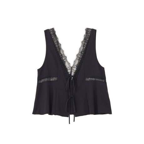 繊細レースで叶える、さりげない大人の色気サテンのなめらかな質感と繊細なレース使いが、上品で女性らしい印象を演出します。ランジェリー風のデザインながら、程よい透け感と落ち着いた表情で、日常のコーディネートに自然になじみます。深めのVラインがデコルテをすっきりと見せ、レイヤードスタイルに奥行きをプラスします。前後で結べるリボン仕様により、フィット感の調整がしやすく、自分らしい着こなしが楽しめます。カットソーやシャツ、ニットの上に重ねるだけで、いつもの装いがぐっと華やぎます。甘さを抑えたセンシュアルな雰囲気で、カジュアルシーンにも取り入れやすい一枚です。透け感[ややあり]