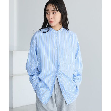 <b>*顔まわりをすっきり見せる、大人のバンドカラーシャツ。</b>
