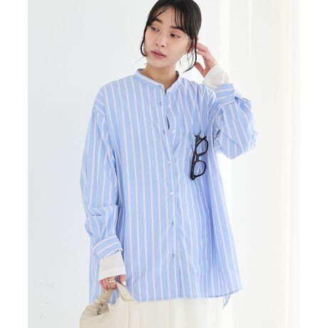 <b>*顔まわりをすっきり見せる、大人のバンドカラーシャツ。</b>