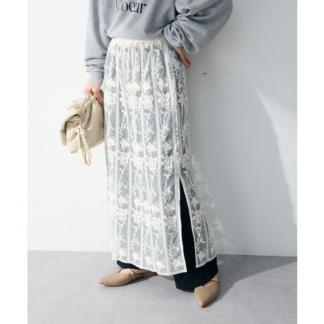 重ねるだけで、装いが華やぐレースの魔法繊細なレース素材を重ねたデザインが、いつものコーディネートに上品なアクセントを添えてくれます。透け感のあるレイヤード仕様なので、重たく見えず軽やかな印象に仕上がります。ウエストはやさしくフィットし、締め付け感が少なく快適なはき心地です。パンツやシンプルなスカートに重ねるだけで、こなれ感のあるスタイルが完成します。カジュアルな装いにも自然になじみ、女性らしさをさりげなく引き立ててくれる一枚です。透け感[あり]