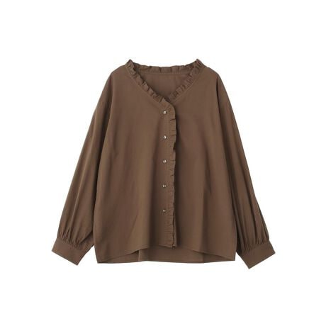 さりげないフリルで、毎日を上品カジュアルに首元をすっきり見せるVネックに、控えめなフリルをプラスしたデザインです。顔まわりが明るく見え、自然と女性らしい印象に仕上がります。全体はゆとりのあるシルエットで、長時間着ても窮屈感が少なく快適です。袖口のギャザーが動くたびにやわらかなニュアンスを生み、シンプルな中にも表情を感じられます。パンツスタイルと合わせればすっきりとした印象に、スカートと合わせればやさしい雰囲気を楽しめます。デイリー使いからちょっとしたお出かけまで幅広く活躍し、着回し力の高さも魅力です。大人の余裕を感じさせる一枚です。透け感[なし]