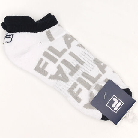 [型番:785930]FILAオリジナルタイポグラフィデザインのアンクルソックス。暑さが残る晩夏にぴったりなアイテム。持続消臭機能があり、底面には滑り止めプリントを施しております。