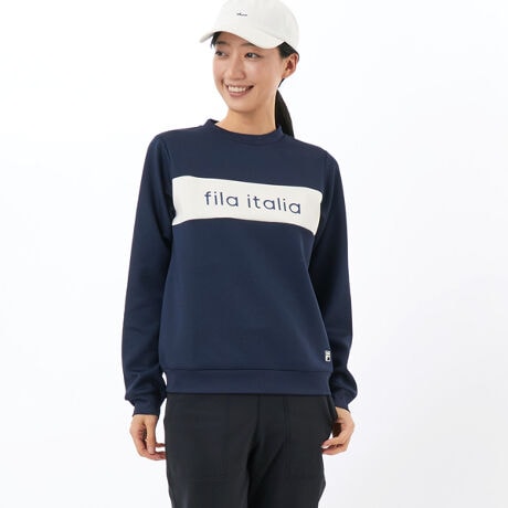柔らかな素材と快適な着心地を追求した、FILA GOLFのレディースクルーネックプルオーバー。