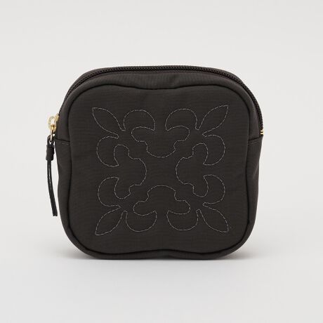 バッグでも人気の高いコーデュラナイロンに、モノグラムステッチをあしらったスクエアポーチ。