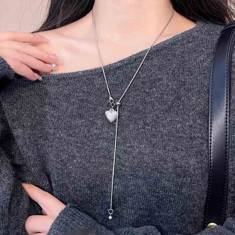 揺れるハートで、装いに甘さをプラスハートチャームロングネックレス