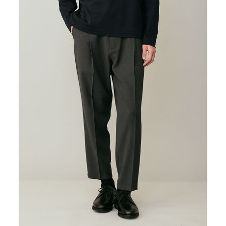 ■素材説明・ウール見えの上品な見た目と、高い機能性を併せ持ったシーズンレス素材。・抜群のストレッチ性で、ストレスフリーな着心地。・吸水速乾機能付き。・着用シワが気になりにくい。・肌に触れる面に平滑性の高い糸を使用し、チクチク感がないさらっとしたタッチを実現。・洗濯機で丸洗い可能でお手入れ簡単。・適度なハリ感が美しいシルエットを演出。
