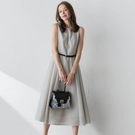 ウエストベルト付きでメタルバックルの輝きが華やかさをプラス。