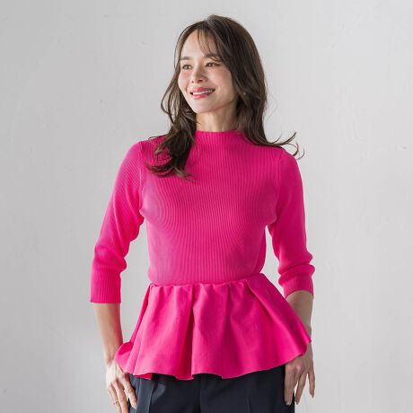 ミニマムなリブニットはインナーにもぴったりなコンパクトシルエット。