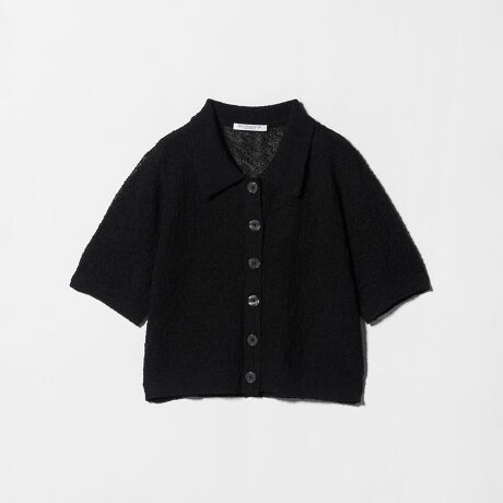 コンパクトなシャツ型の半袖カーディガン。