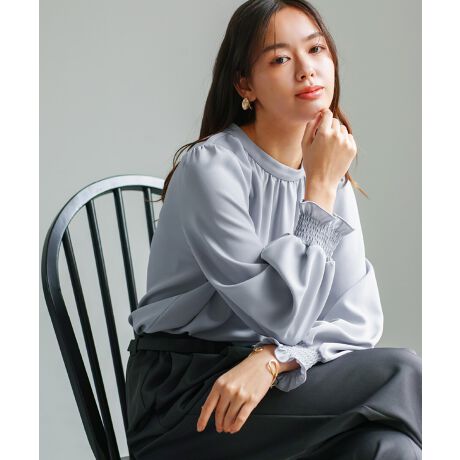 ブラウス スタンドネック ボリューム袖 シャーリング袖 フリル袖 オフィス セレモニー デイリー きれいめ 上品 体型カバー