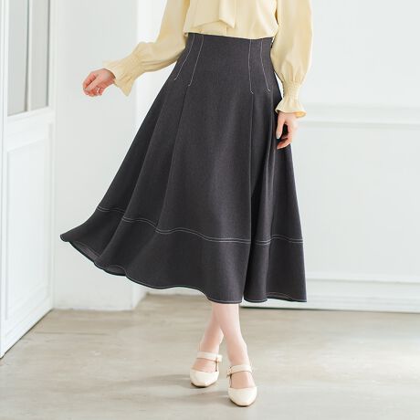 軽やかに揺れる、ポリデニムスカート。