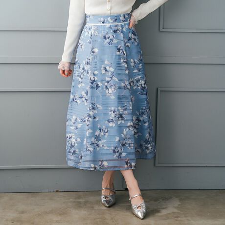 2026春夏新作 花柄メッシュボーダースカート