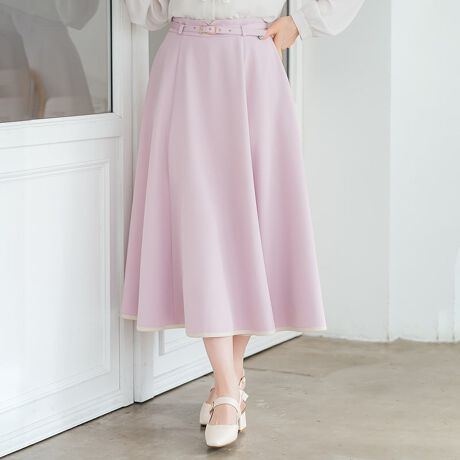 裾にさりげなく効かせた配色デザインが、動くたびに表情を添えるフレアスカート。