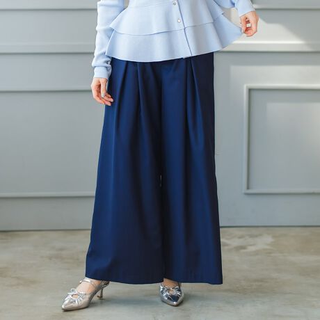 フロントに入ったタックが立体感を生み、きれいな落ち感を演出するワイドパンツ。