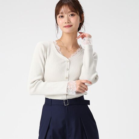 繊細なレースが引き立つ、上品さを纏うニットトップス