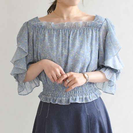 小花柄のシアー素材が、やさしくフェミニンな印象を演出するブラウス。