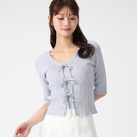 2026春夏新作 ラメ配色リボンアイレットリブニット