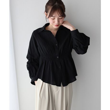 袖に施された立体的なタックが、上品で華やかなシルエットを描く主役級ブラウス。