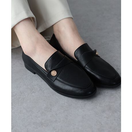 きちんと見えする品の良い雰囲気のゴールドメタルモチーフローファー