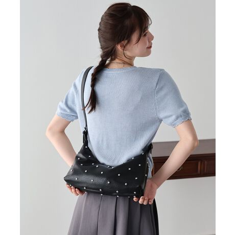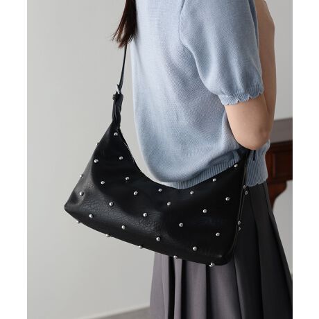 コーディネートにピリッとしたスパイスを添える、シルバースタッズを贅沢にあしらった主役級バッグ。