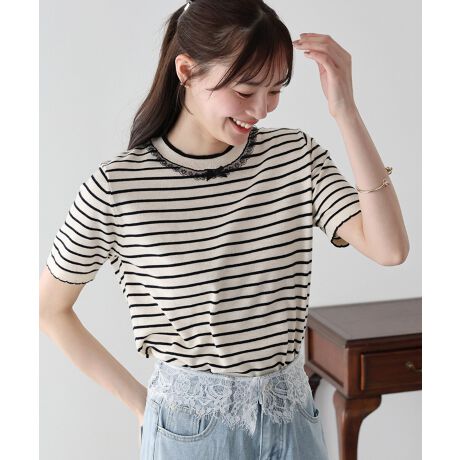 レースリボンボーダーニット