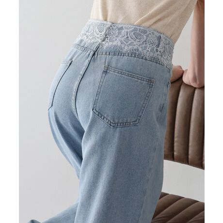 エレガントな魅力をプラスしたウエストレースデニムパンツ