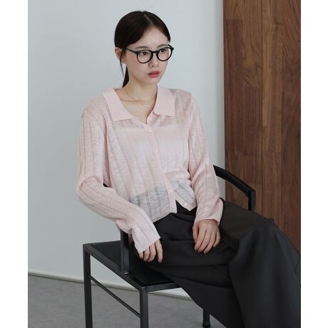 軽やかな透け感が春夏らしいムードのシアーリブポロニット