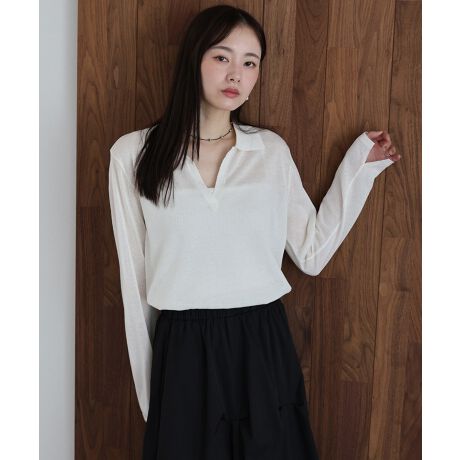 軽やかなスキッパーネックと透け感が春夏らしいムードのシアーニット