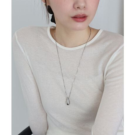 ぷっくりとした雫モチーフのペンダントトップが光を反射してキラキラと輝き、スタイリングのアクセントに。