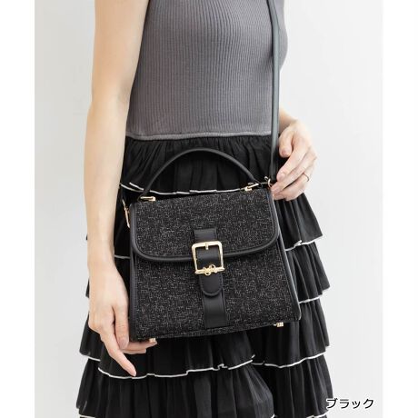 上品なモノグラムバックルがポイントのハンドバッグ。
