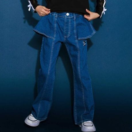 女の子らしさを引き立てるフリル付きデニムパンツ。
