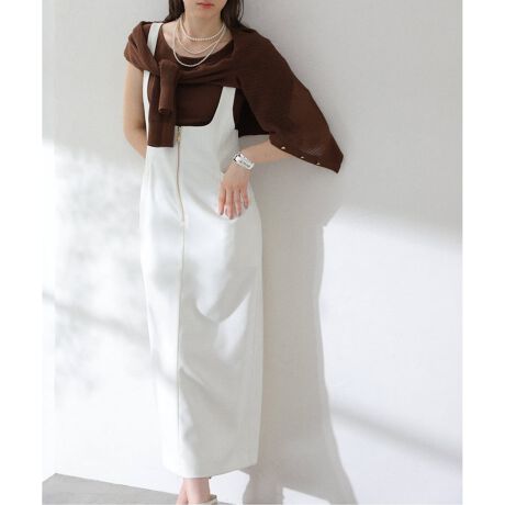 オフィスにもカジュアルにも使える麻調合繊のジャンパースカート。