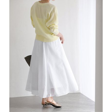 軽やかな透け感が魅力のシアーチェック素材を使用したパネルスカート。