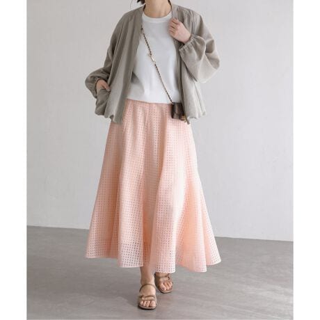 軽やかな透け感が魅力のシアーチェック素材を使用したパネルスカート。