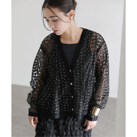 繊細なフラワーの刺繍が華やかな印象のカーディガン。