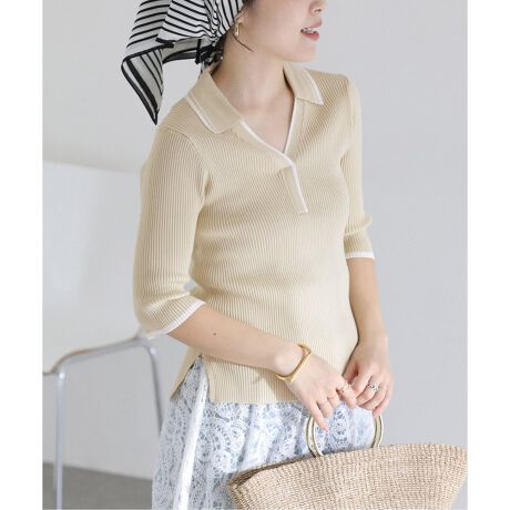 《予約》【洗える】バイカラーポロ襟ニット