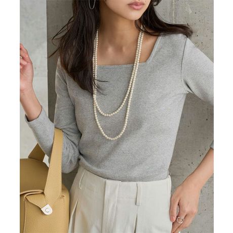 深めに開いたスクエアネック&Uネックが、すっきりとした抜け感を演出する長袖Tシャツ。